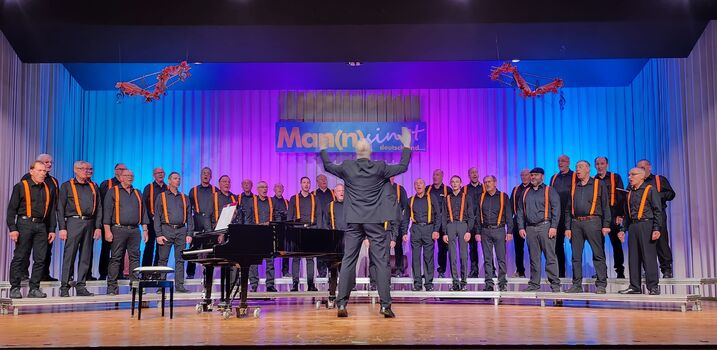 Beim Konzertabend „Man(n) singt Deutsch und…“ in der Volkshalle Pohlheim durften wir von der Reinen Männersache Teil eines besonderen musikalischen Erlebnisses sein. Mit 30 Sängern unter der Leitung von Roman Zöller präsentierten wir moderne Chorliteratur, unter anderem Werke des bekannten Songwriters Oliver Gies, und freuten uns über die begeisterte Resonanz des Publikums.