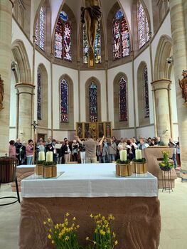 Der Freitag stand ganz im Fokus unseres eigenen Programms. Am Samstag durften wir dann den Chor „Die Freunde Zellhausen“ zu einem gemeinsamen Probetag begrüßen – ein echtes Highlight! Gemeinsam gestalteten wir um 17 Uhr die Vorabendmesse in St. Bonifatius mit.