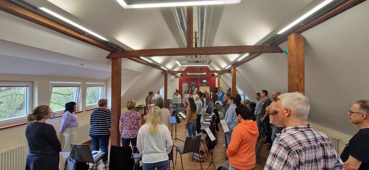 Auch nach dem Abendessen ging es noch einmal in eine kurze Probe, und selbst am Sonntagvormittag wurde weitergearbeitet. Was sich nach viel Programm anhört, war in Wirklichkeit vor allem eines: Freude am gemeinsamen Musizieren. 🎶